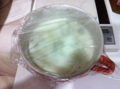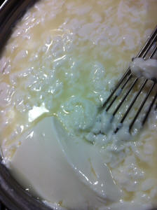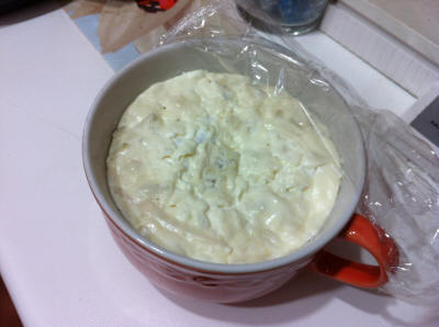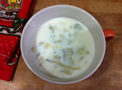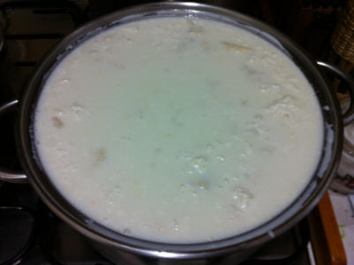 Il giorno prima di fare il formaggio prendete una tazza, metteteci un pezzo di gorgonzola e poco meno di mezza tazza di latte tiepido, mescolate, coprite e lasciate fino al giorno dopo, noterete che è quasi raddoppiato di volume, segno che le muffe si sono moltiplicate.