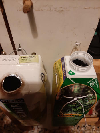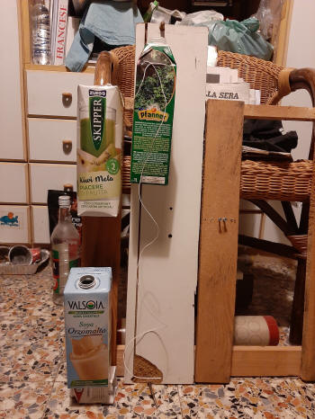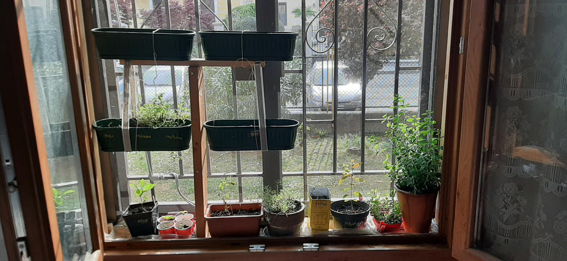 Ho notato che al posto di usare i vasi tetrapack appesi (che dimostra criticità del materiale) ho provato a fare de vasi pensili aggiungendo un'asse e delle corde per tenere i vasi e questa è una buona soluzione, ecco le foto