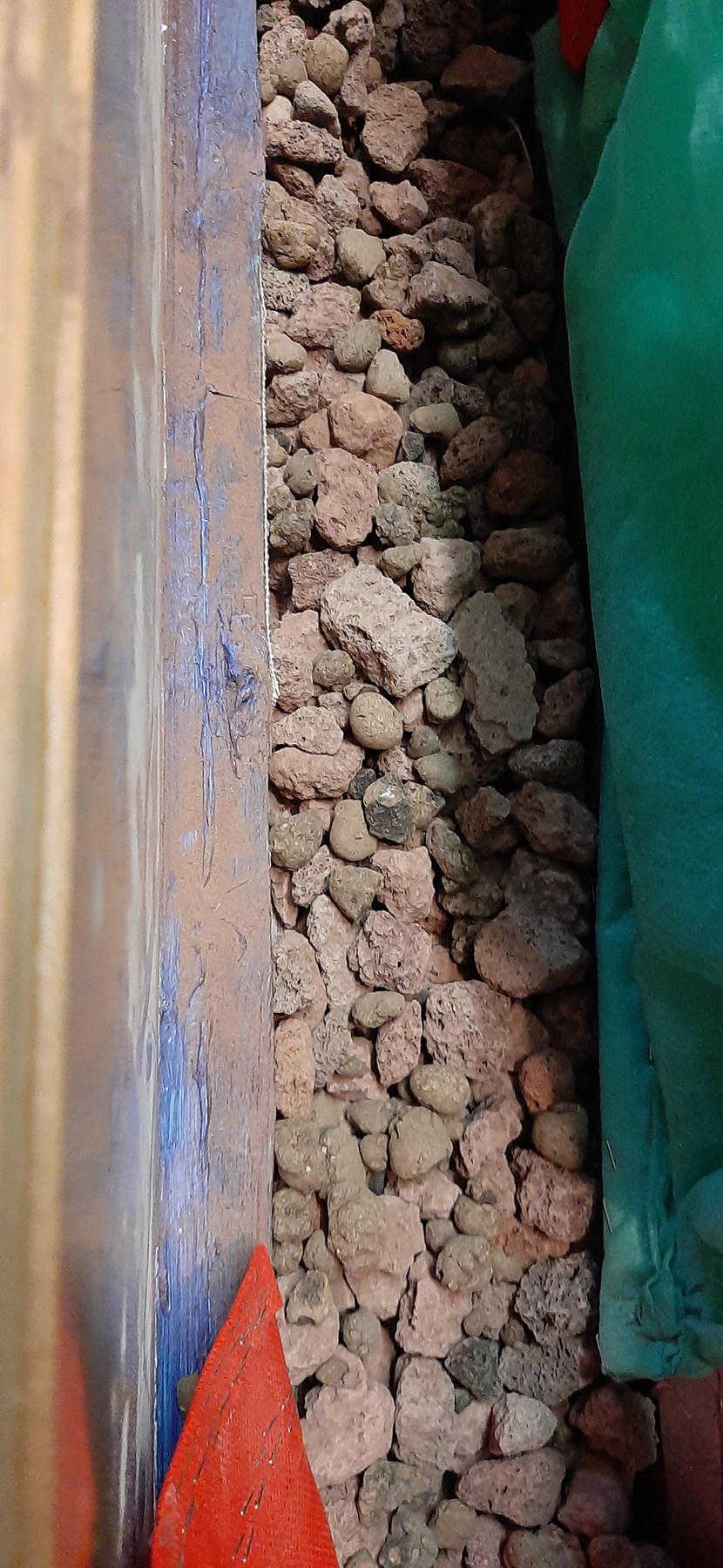 Sotto a contatto con i buchi una garza e delle rocce vulcaniche con dell'argilla espansa per drenare