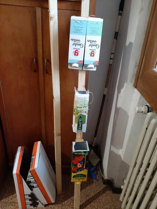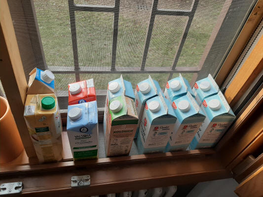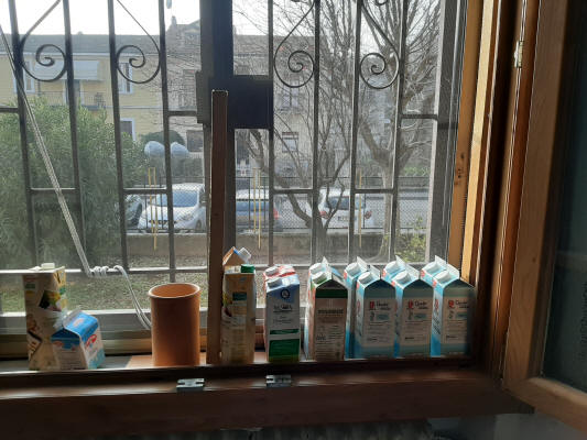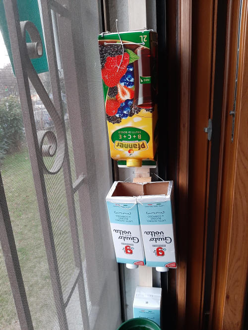 Una delle opzioni per i vasi è l'utilizzo dei contenitori in tetrapak. Si possono mettere quelli singoli da 1 litro, quelli singoli da 2 litri o due da 1 litro singoli affiancati oppure trasformare due vasi singoli da 1 in uno da 2 litri