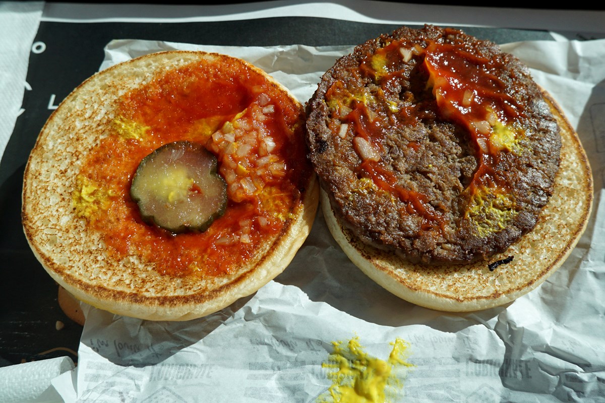 McDonald's ad assaggiare l'hamburger di manzo nella versione classica,
