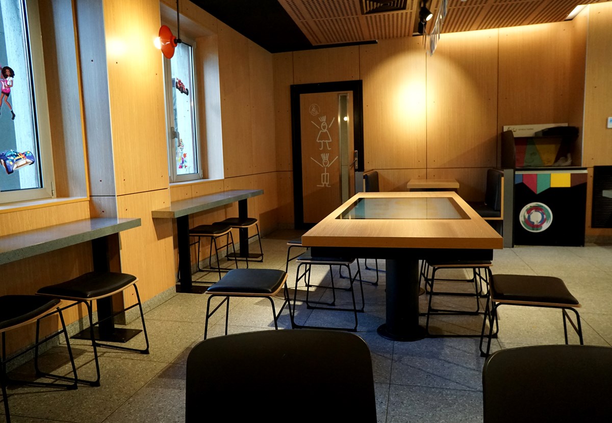 con i totem per il pre ordine, e le casse, oltre che la zona con