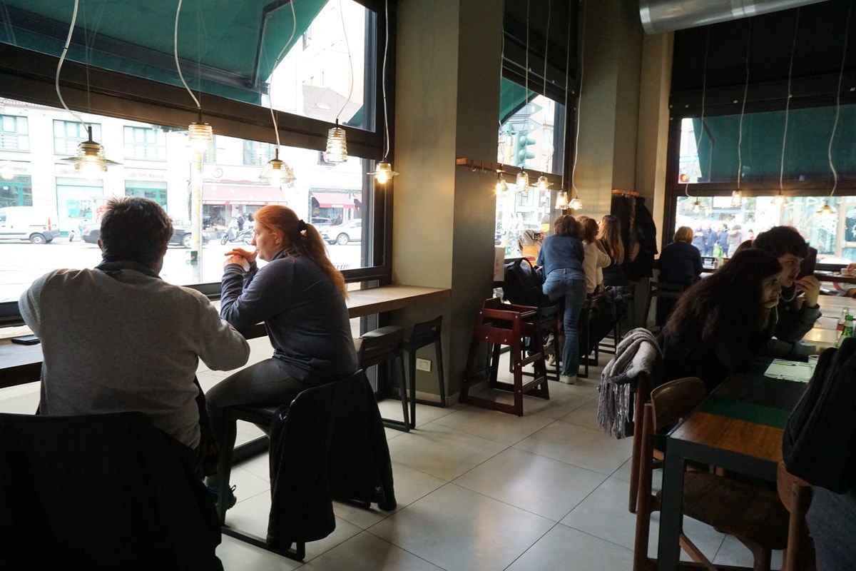 è possibile accodarsi ai tavoli o banconi per mangiare il panino