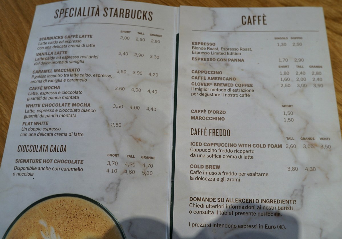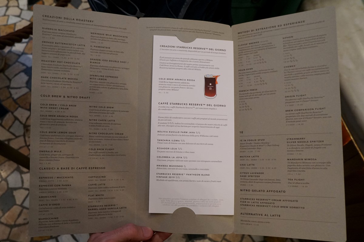 PREZZI: nello Starbucks Reserve si possono trovare prodotti particolari,
