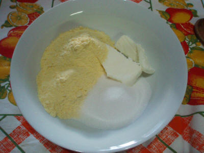 Farina di mais fioretto 100g Zucchero 50g Burro 50g Latte q.b.