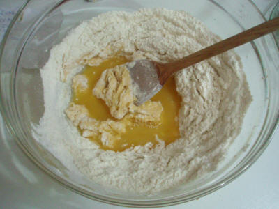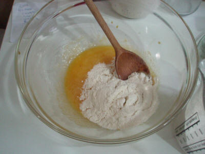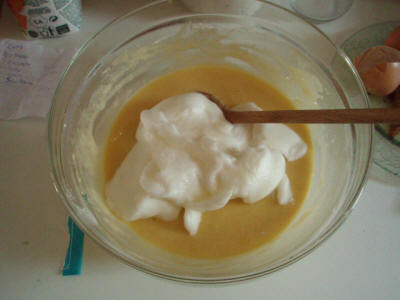 Separare il tuorlo dall'albume che poi verrà montato a neve. Mescolare il tuorlo con lo zucchero, aggiungere la farina e il succo di arancio, infine il lievito e l'albume montato a neve poi imburrare la teglia e infornare a 180° per 25-30 minuti