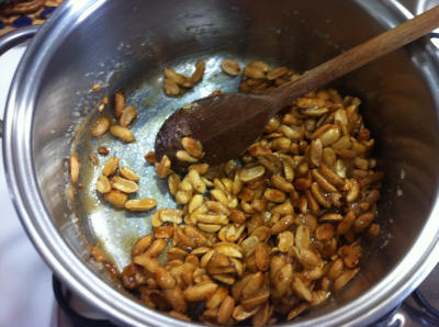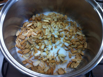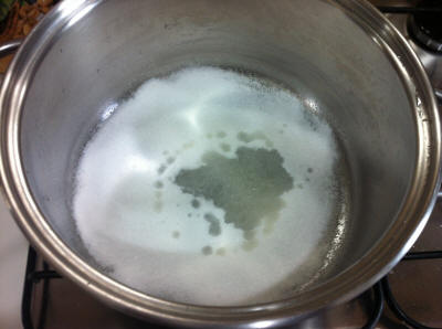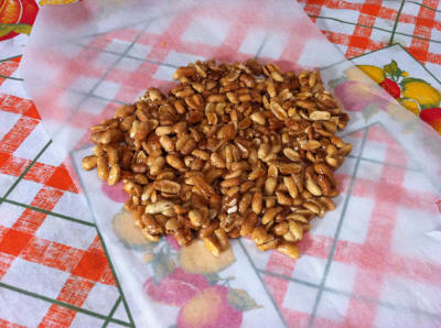 | Mettete lo zucchero, il succo di limone e le arachidi, accendete il fuoco basso e mescolando aspettate che si scioglie lo zucchero, mescolate spesso per evitare che bruci, poi stendete il croccante sulla carta da forno e con il cucchiaio spianatelo. Potete tagliarlo quando è ancora tiepido, oppure farlo a pezzi quando è duro