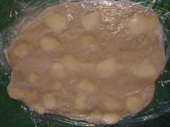 | Starter: 25g farina 1tsp di lievito 38ml di acqua Impasto: 125 g di burro freddo a cubetti |