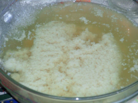 disciolto in poca acqua, caglierà all'istante, poi si prenderà con un mestolo