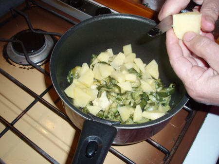 Successivamente sbucciate una patata, aggiungetela e aggiungete acqua che dovrà