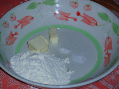 E' semplice da fare basta impastare la farina con il sale, lo zucchero e il burro aggiungendo poca acqua in modo da creare una palla che poi andremo ad appiattire con il mattarello aiutandoci con un po' di farina, la consistenza è quella della pasta frolla, solo che il gusto è neutro
