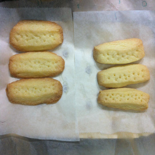 40% burro (a sinistra): troppo burro non tengono la forma, sono buoni appena cotti e se tenuti al riparo dall'aria