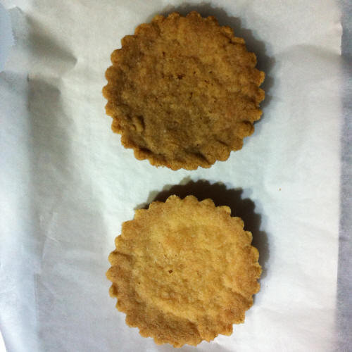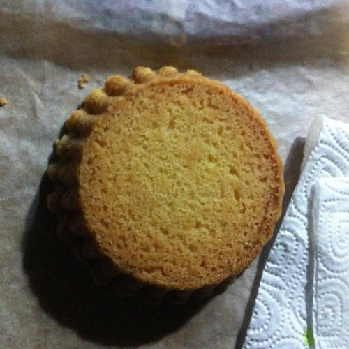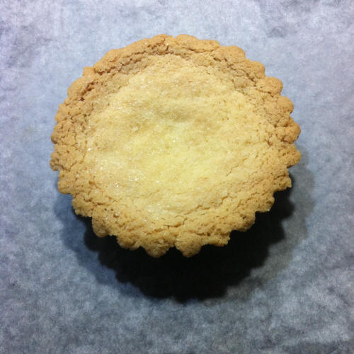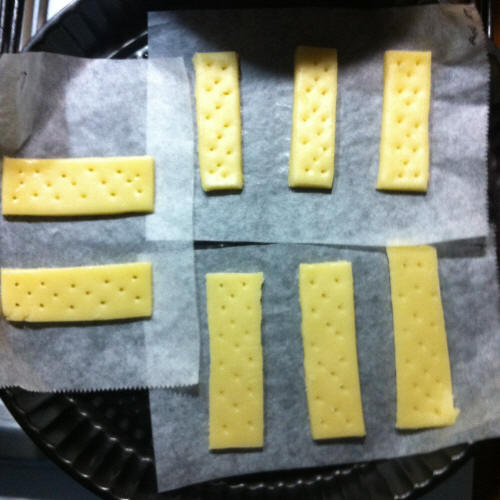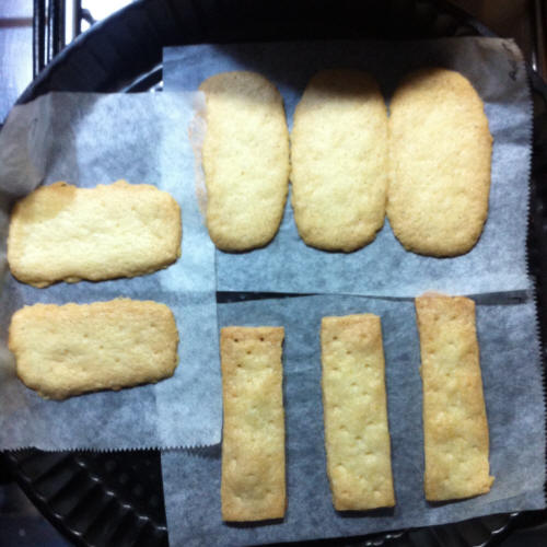 Ho diviso in 2 l'impasto (circa 66g ognuno) e cotto 30 e 40 minuti. Il risultato migliore è 30 minuti, mentre 40 è bruciato. La consistenza è sempre resistente, ma è come gli shortbread originali, solo che la mia contiene più zucchero e il gusto è migliore.