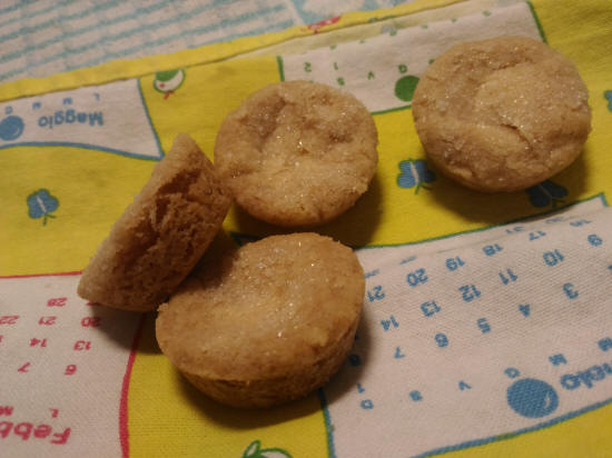 Ho provato a farli più piccoli usando la teglia delle tartellette mettendo 1/2 TBSP di impasto, cosparso di zucchero e ho cotto a 160° per 25 minuti. Il risultato è stato molto positivo. Un paio ho provato a coprirli per metà di cioccolato fondente ma non mi ha convinto.