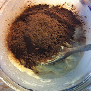 Ora è il momento del cacao e quando ha raggiunto un bel colore ci possiamo mettere anche dei pezzettini di cioccolato abbastanza grossi