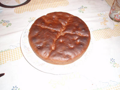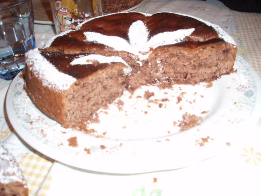 Gli ingredienti sono quelli della torta di mele (senza mele e con cacao e cioccolato): 150 di farina, 125 di zucchero, 1 uovo, 50g di burro, 125ml di latte, 1/4+1/8 di lievito di birra disidratato, 12g di cacao, 32g di cioccolato (il cacao ne ho messo poco). Ho fatto con una parte degli ingredienti una biga mettendo 100g di farina, 50 di zucchero e 1/4 di lievito. Poi ho impastato gli altri ingredienti e ci ho aggiunto la biga lievitata una notte.