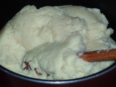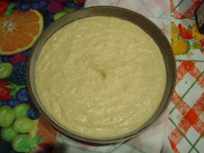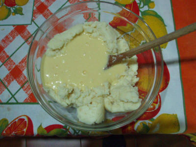 A parte sbattere le uova con lo zucchero, la vanillina, la ricotta e qualche scorzetta di limone grattugiata, quando il composto è omogeneo unitelo al polentino poco alla volta mescolandolo bene e amalgamandolo. Poi imburrate e infarinate la teglia e infornate per circa 40 minuti a 180° controllando con lo stecchino.