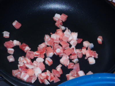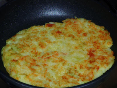 Far rosolare la pancetta in una padella, lasciare il grasso e togliere la pancetta. Mettete le patate e la verza dando una forma tonda e fate dorare da un lato, girate e fate dorare anche dall'altro lato. Se necessario giratela più volte. Servite con la pancetta sopra.