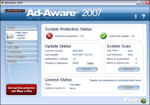 Versione 2007 di Ad-Aware nella versione gratuita e in