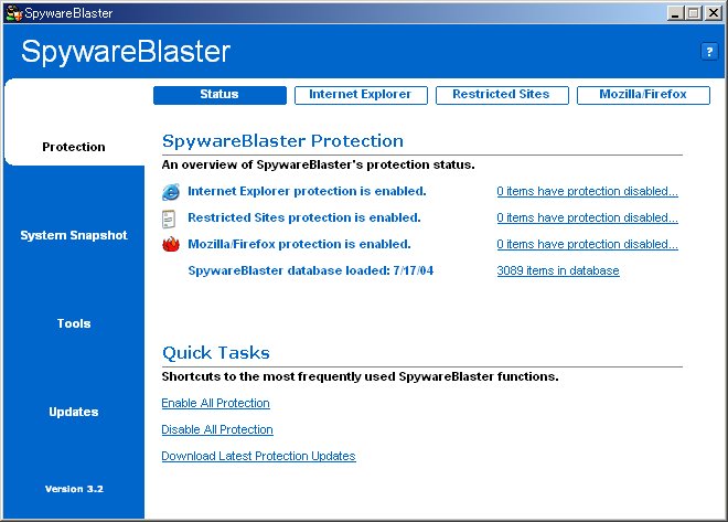 SpywareBlaster è così in grado di mantenere il vostro sistema sempre