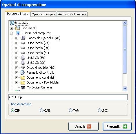 Potete scegliere il formato, e successivamente su opzioni principali pure l'entità della compressione. |