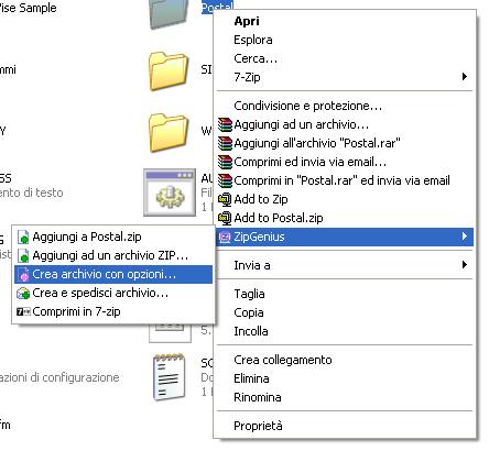 Basta selezionare un file o una cartella e andare su "ZipGenius" poi "Crea archivio con opzioni" per poter scegliere le opzioni (che vedrete qui sotto) oppure "Aggiungi ad un archivio ZIP" per comprimerlo immediatamente. |