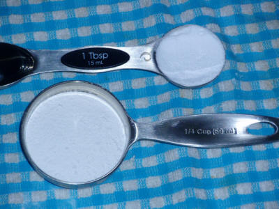 Unire le 2 polveri mescolando bene. Se non si utilizza tutto subito aggiungete un cucchiaino di amido di mais, conservatelo in un vasetto chiuso al fresco e all'asciutto. Per testare se il lievito è attivo basta metterne una punta in un cucchiaio di acqua calda, se fa le bolle è attivo.