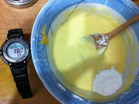 Ho fatto un impasto semplice di una torta margherita e all'una di notte, ho messo il lievito (Bertolini, contenente E500 ed E450) e conservato il tutto in frigorifero lasciandolo nel contenitore dove l'ho impastato.