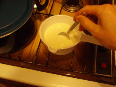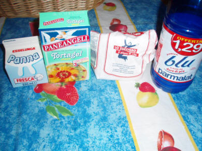 In un pentolino mettere il contenuto di una bustina di gelatina in polvere per dolci, 3-4 cucchiai da minestra di zucchero poi piano piano la panna e il latte e mescolare, poi passate sul fuoco molto lento
